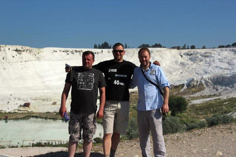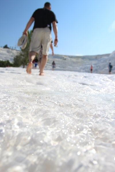 Etter frokost med og den eldre joinet oss under frokosten, kun for selskapets skyld. En del tegnspråk og litt gloser så ble det en slags samtale ut av det. Etterpå bar det på sightseeing 6-7 minutters gange unna hotellet. Pamukkale kan skilte med noen ganske kule formasjoner som ser nesten ut som snø og is, men det er en form for kalkavleiring eller noe. Jeg fikk meg en brosjyre på russisk så jeg skjønte ikke så mye av det som sto der - blir vel mye mer av det samme når jeg kommer forbi Iran tenker jeg :) Må snart begnne å lese meg opp på det cyrilliske alfabetet såass at det er mulig å forstå skilter ihvertfall.