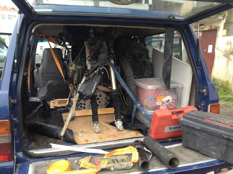 I løpet av dagene her i Magadan var det shipping og hjemreise som var hovedoppdraget. Vi møtte Audun som vi har hatt kontakt med de siste par ukene. En trønder i en Landcrusier som jobbet med å få sendt hjem bilen sin i container. De var to biler og fem personer som hadde kjørt fra Norge via Mongolia og hit. Han var nå den siste igjen her i Magadan. Containeren han jobbet med kunne der være plass til tre motorsykler. Vi fikk etter mye styr tilgang til en container og fikk prøvestablet litt. dette blir trangt!