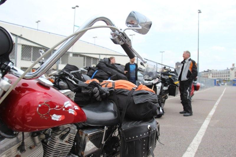 Dagen fikk en myk start på stuegulvet til Lene (takk for lånet Lene) - myk start i dobbelt forstand, både for at jeg har ett supercomfy liggeunderlag som er på tykkelse med en middels luftmadrass og at jeg våknet inne til frokost og nypresset kaffi. Ikke værst med slik oppvartning.Etter en times tid på nett og et par ærend i oslo bar turen til ferge kaia til Colorline. Der møtte jeg trønderne Geir og Erlend samt norsk/svenske Torbjøn. Torbjørn er musiker og spiller i operaen og var en ivrig motorsykkelkjører som la ned noen mil hvert år.